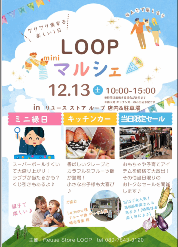 LOOPでは、店頭販売、ネット販売、フリーマーケットなど様々な方法で販売を行っています。